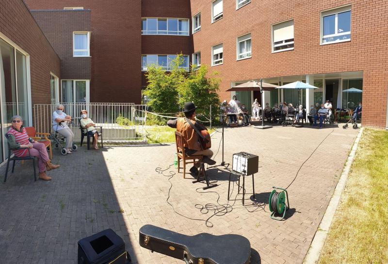 C'est sous le soleil que les résidents de la Maison de repos Leonardo da Vinci ont pu profiter d'un récital donné spécialement pour eux par le chanteur de rue Laurent Vanderheyden. Grâce à vous, les bénéficiaires, fortement impactés par la crise sanitaire que nous traversons, ont retrouvé le sourire le temps de quelques chansons. Merci à vous !