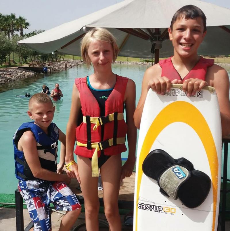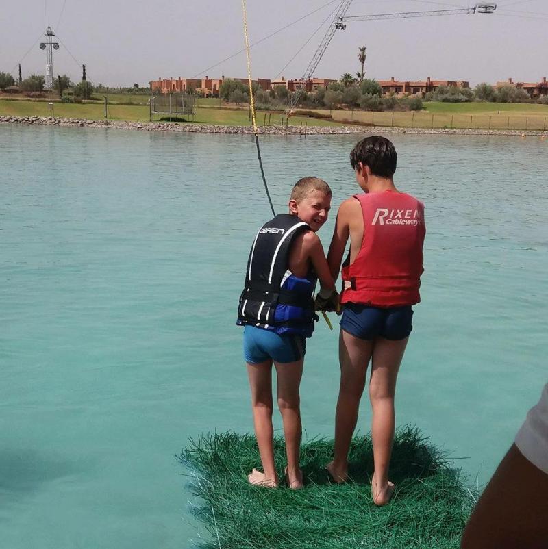 Aujourd’hui c’est le jour du wake board, nous allons faire une activité hors du commun. Nous nous rendons au Waky Parc. Waouh, c’est joli, mais c’est pas super facile. C’est après plusieurs tentatives que certains parviennent à surfer avec le wake board. Deux des ados arrivent à faire tout le parcours !