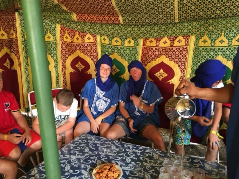 Les marocains sont super accueillants, quand nous avons fini notre parcours, ils nous offrent un délicieux thé. Après un bon repas au restaurant de centre, nous allons nous rafraîchir dans une belle piscine dans les montagnes!